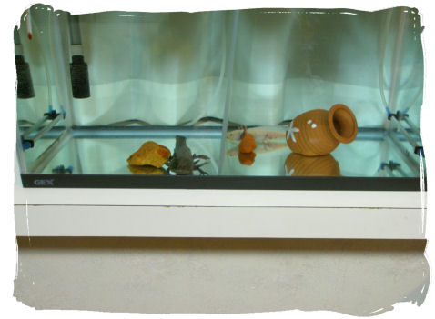 ↑りゅーが大きくなったので水槽を半分にセパレーターで区切ったつもりが・・・