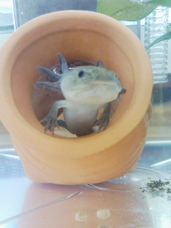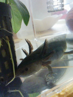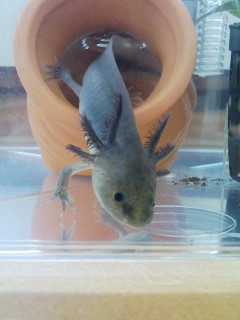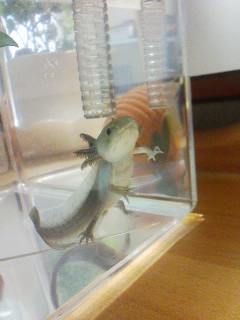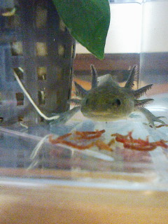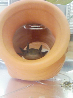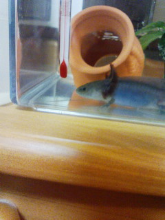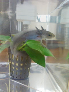 最近では私が水槽のフタを開けて、ガサゴソやってるとエサかと思ったのか、水面まで上がってくるようになりました♪