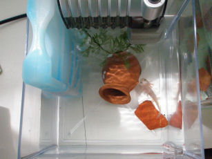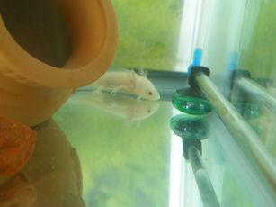 上から覗くとなんとも涼しげなりゅーの住処です(水温20度)