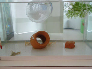 60センチ水槽(奥行き30)を半分にしたら一匹30×30で結構面積あるので安心☆